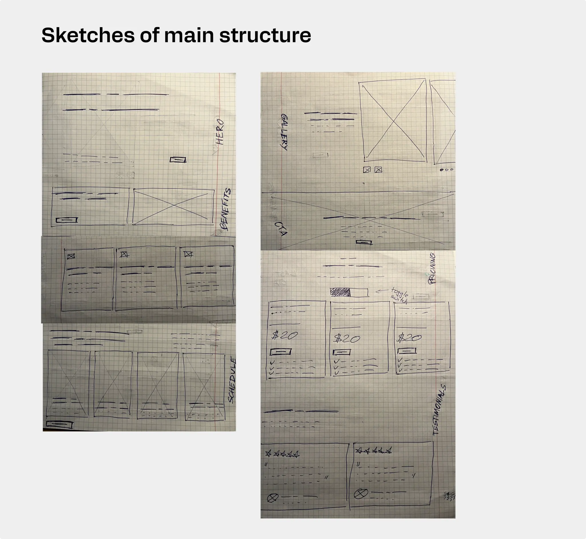 The One-Page Structure: Our minimalist approach meant every element had to earn its place. The single-page format forced clarity and prioritization - perfect for a studio that serves three distinct audience groups but shares a unified message of accessible, community-focused yoga practice.
